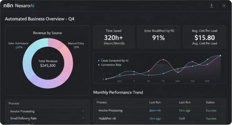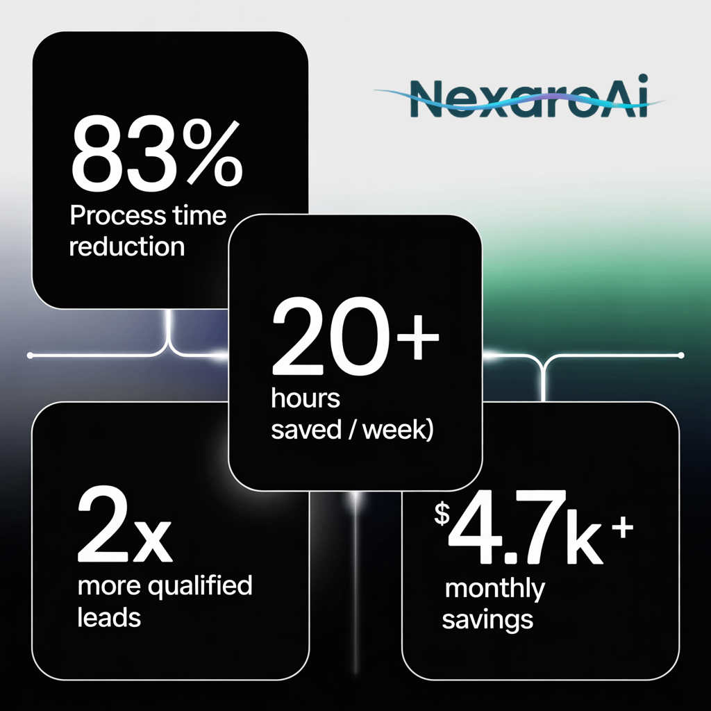 At NexaroAI, we leverage AI automation, CRM integrations, and process optimization to help companies implement savings and scale operations significantly faster than with traditional methods.